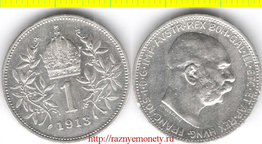 Австрия 1 корона 1913 год (тип 1912-1916, серебро)