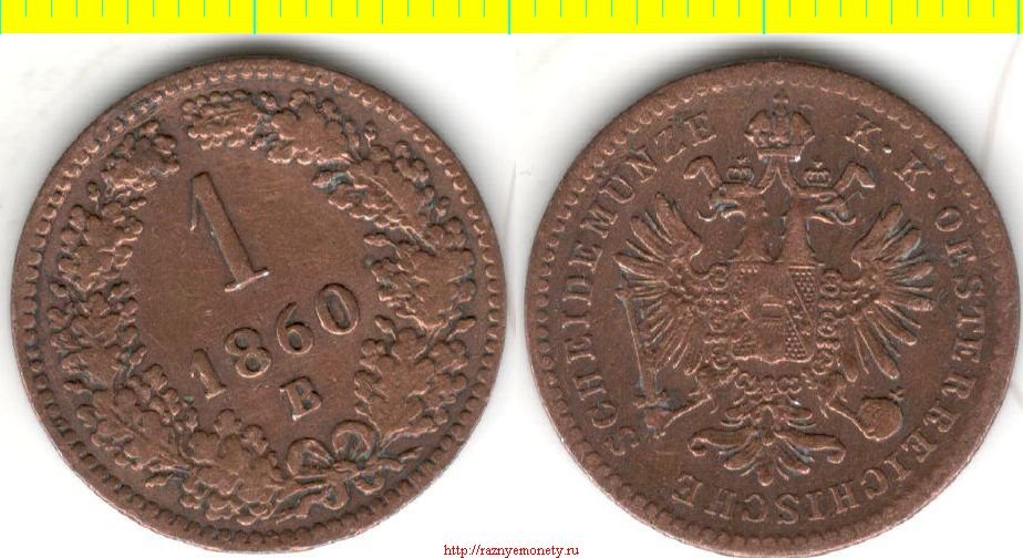 Австрия 1 крейцер 1860 год В (тип 1858-1881) Франц Иосиф I