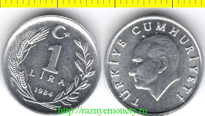 Турция 1 лира 1984 (год-тип) поздняя луна - РЕДКОСТЬ