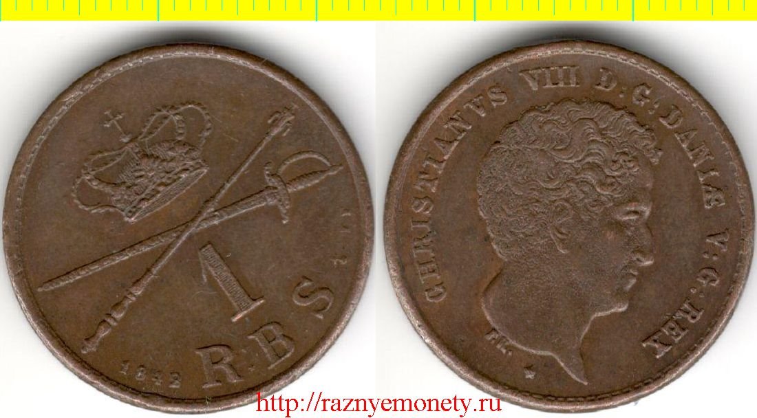 Дания 1 ригсбанкскиллинг 1842 год (год-тип, медь) Кристиан VIII