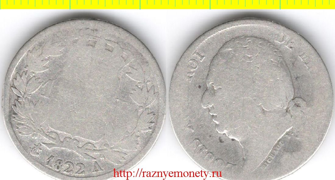 Франция 1 франк 1822 год А (тип 1816-1824, серебро) Людовик XVIII - РЕДКОСТЬ