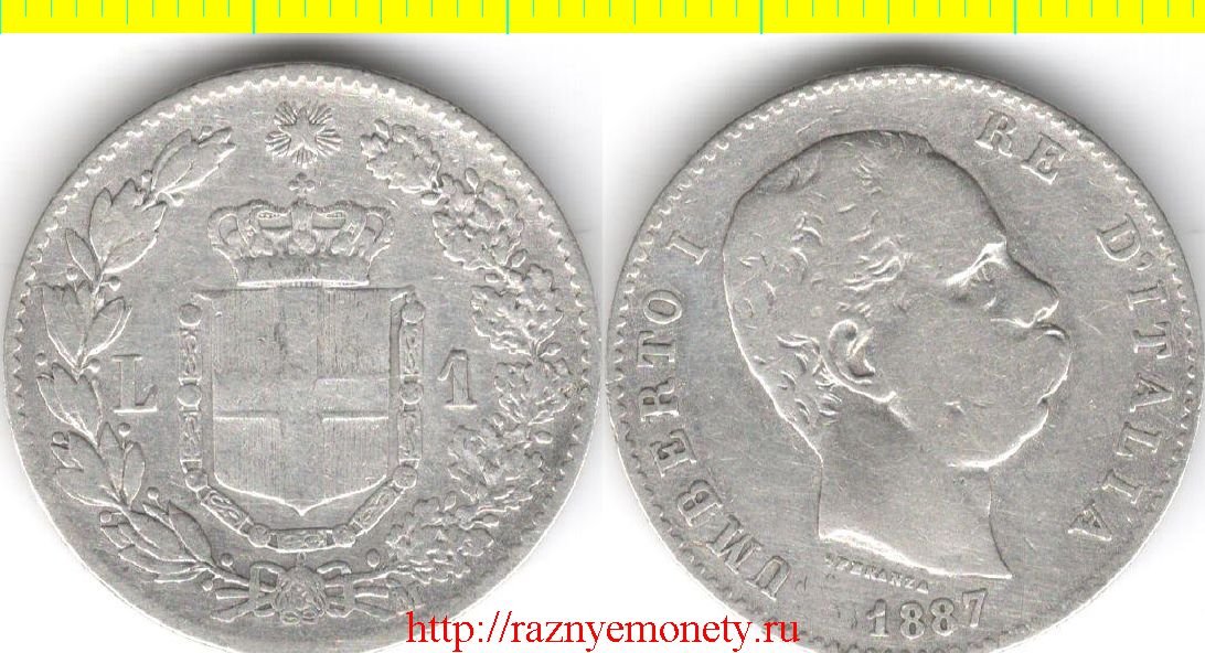 Италия 1 лира 1887 год (год-тип, серебро) Умберто I