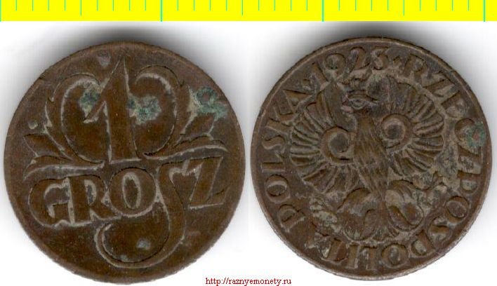 Польша 1 грош 1923 год (тип 1923-1939, бронза) РЕДКОСТЬ