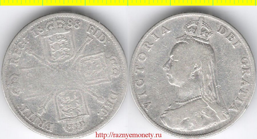 Великобритания 1 флорин (2 шиллинга) 1888 год (тип 1887-1892, серебро 11 г) Виктория