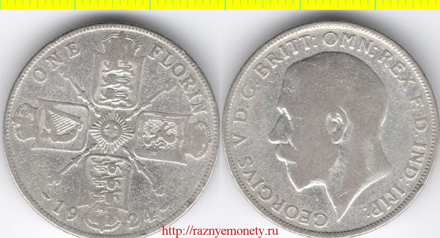 Великобритания 1 флорин (2 шиллинга) 1924 год (тип 1920-1926, серебро 11 г) Георг V