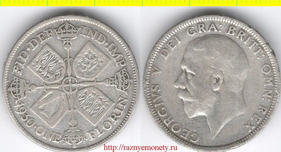 Великобритания 1 флорин (2 шиллинга) 1930 год (тип 1928-1936, серебро 11 г) Георг V