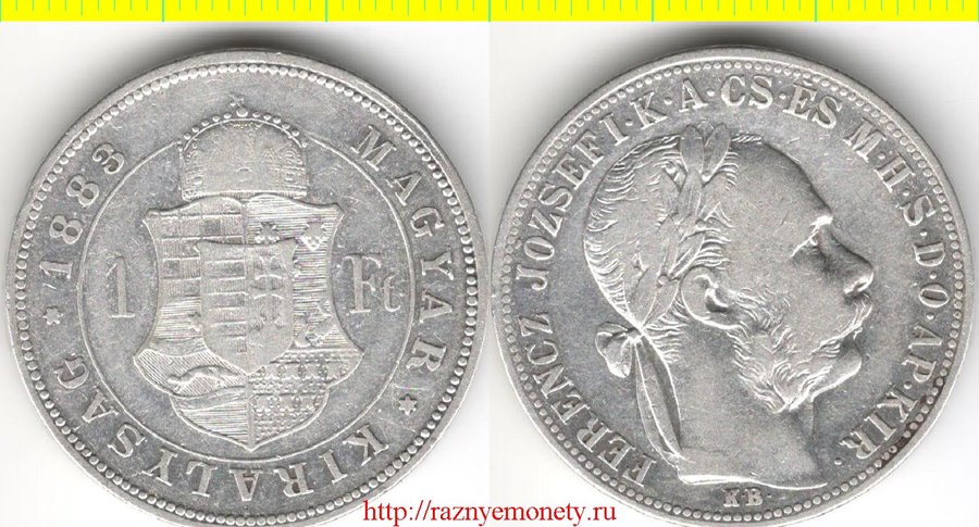 Венгрия 1 форинт 1883 год (тип 1882-1890, серебро 12 г) Франц Иосиф I