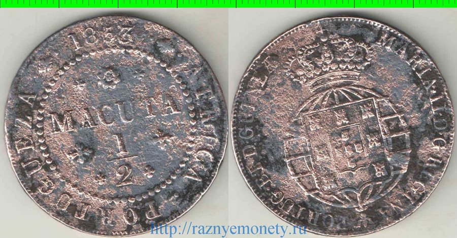 Ангола Португальская 1/2 макута 1853 год (Мария II) (редкость) (диаметр 38мм)