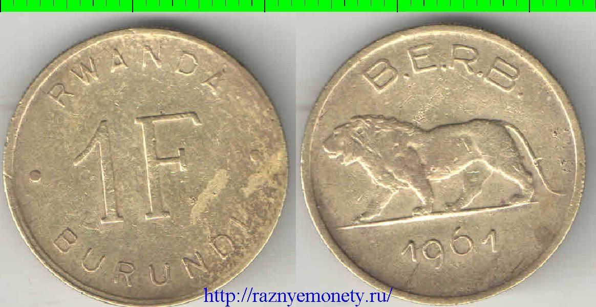 Руанда-Бурунди 1 франк 1961 год (нечастый тип) (животные, лев)