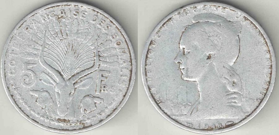 Сомали Французский берег (Джибути) 5 франков 1948 год (тип I, нечастый тип)