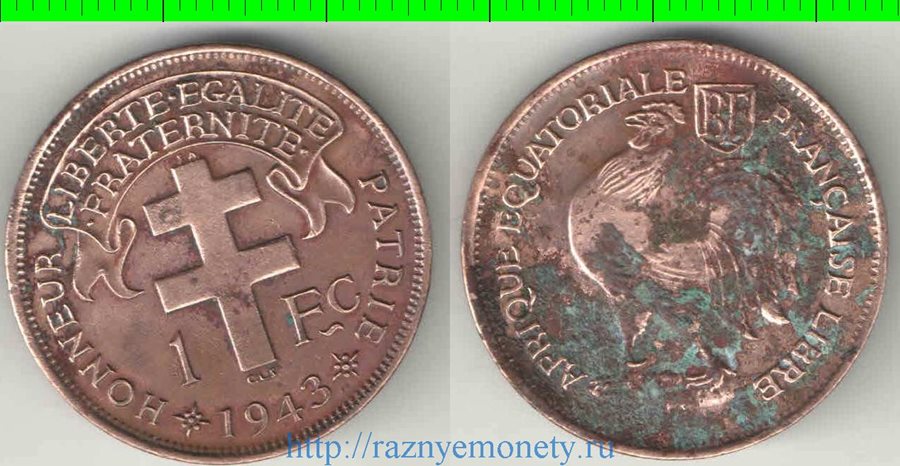Экваториальная африка Французская 1 франк 1943 год (тип II) (бронза) (петух)