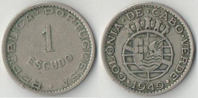 Кабо-Верде Португальская 1 эскудо 1949 год (тип II, год-тип)