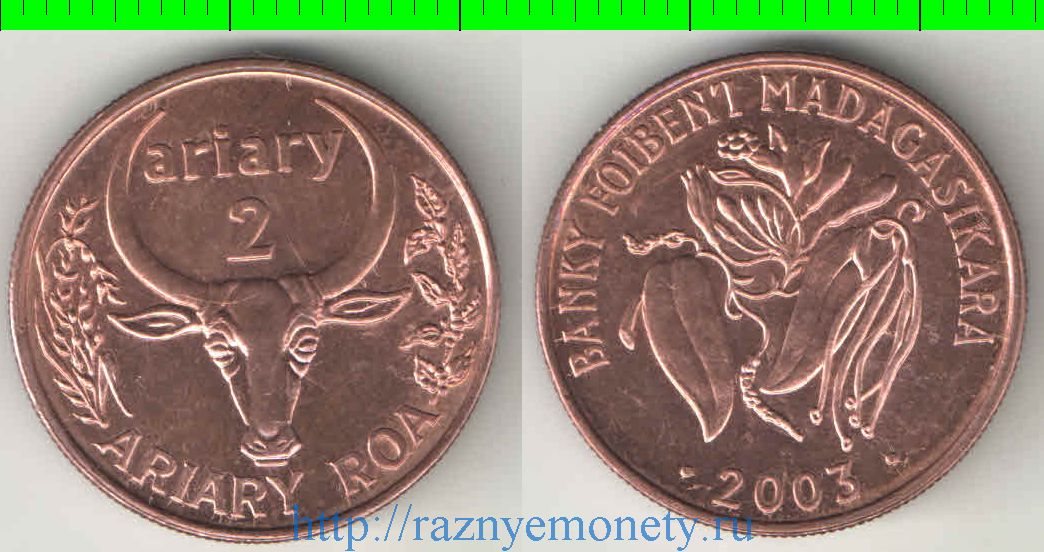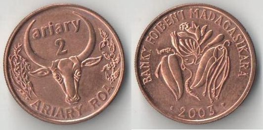 Мадагаскар 2 ариари 2003 год (год-тип) (медь-сталь) (животные, буйвол)