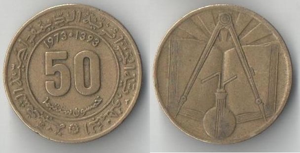 Алжир 50 сантимов (1971, 1973) (наука) (книга, циркуль, колба)
