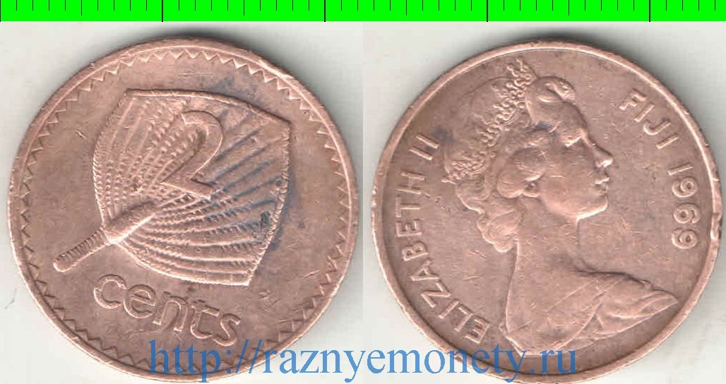 Фиджи 2 цента (1969-1985) (Елизавета II) (тип I, бронза)