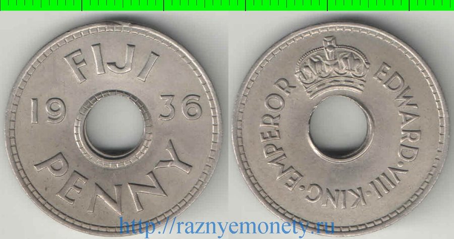 Фиджи 1 пенни 1936 год (Эдвард VIII) (редкость) (неправильная форма, отверстие)