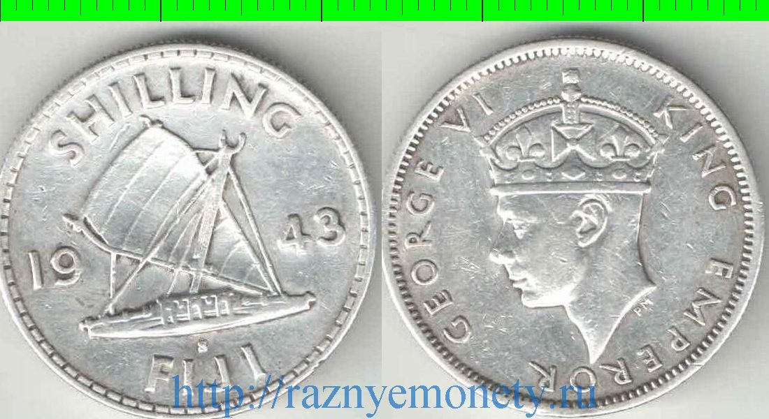 Фиджи 1 шиллинг (1942-1943) (Георг VI) (серебро) (нечастый тип и номинал)