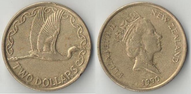 Новая Зеландия 2 доллара 1990 год (Елизавета II) (нечастая)