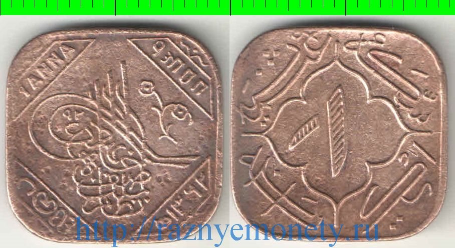 Хайдарабад (Индия) 1 анна 1943 (1362) год (бронза) (редкий тип) (неправильная форма, квадрат)