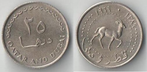Катар и Дубай 25 дирхемов (1966, 1969) (нечастый тип) (животные, олень)