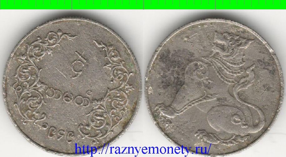 Бирма (Мьянма) 4 пе (1949-1950) (очень редкий тип) (неправильная форма, волнистая)
