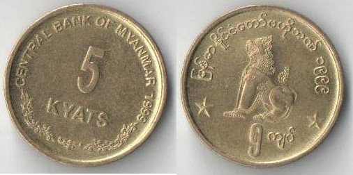 Бирма (Мьянма) 5 кьят 1999 год (животные, лев)