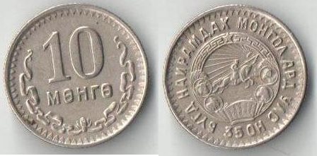 Монголия 10 менге 1945 год (нечастая) (всадник, человек, животные, лошадь, звезда)