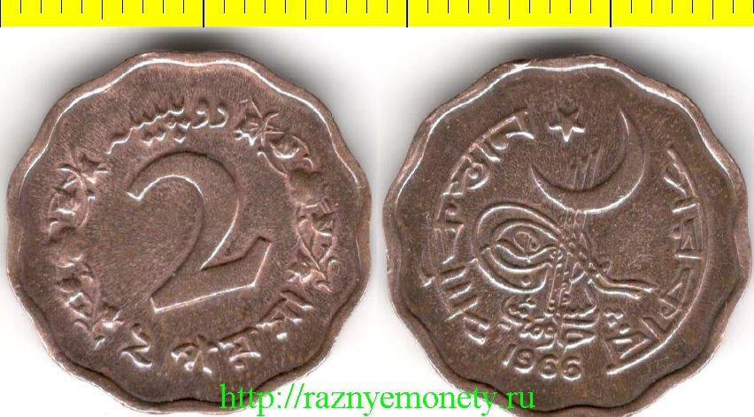 Пакистан 2 пайса 1966 год (тип 1964-1966, нечастый, бронза)