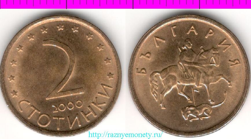 Болгария 2 стотинки 2000 год (латунь-сталь) (всадник, человек, животные, лошадь)