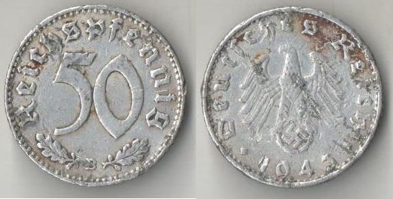 Германия (Третий Рейх) 50 пфеннигов 1943 год В