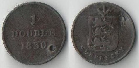 Гернси 1 дубль 1830 год (тип I, год-тип) (с отверстием)