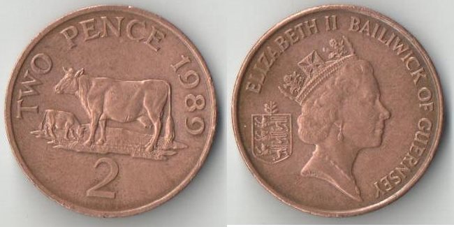 Гернси 2 пенса (1985-1997) (Елизавета II) (животные, корова)