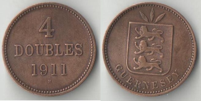 Гернси 4 дубля 1911 год (тип IIа) (нечастая)