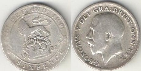 Великобритания 6 пенсов (1920-1925) (Георг V) (тип II) (серебро)