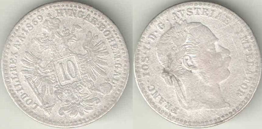 Австро-Венгрия 10 крейцеров 1869 год (серебро)