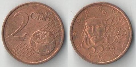 Франция 2 евроцента (1999-2012) (карта)