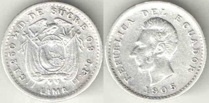 Эквадор 1/2 децимо (1893-1912) (тип II) (Лима) (серебро)