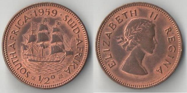 Южно-Африканская Республика (ЮАР) 1/2 пенни (1953-1960) (Елизавета II) (корабль, лодка)