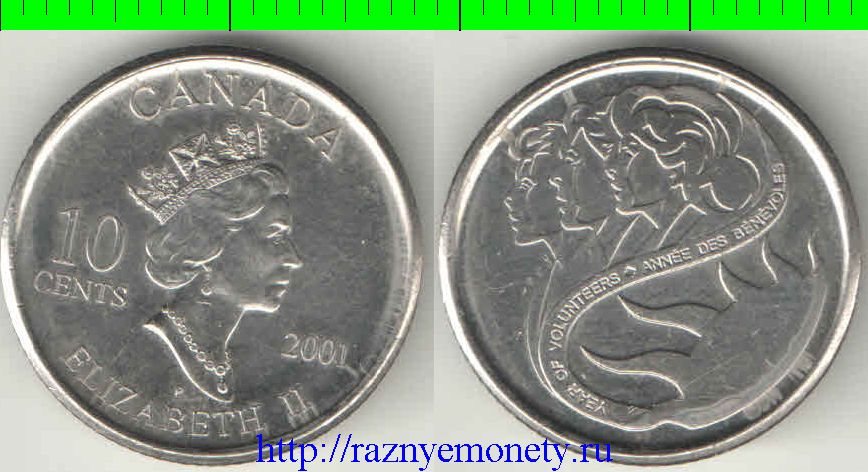 Канада 10 центов 2001 год (Елизавета II) (волонтёры)