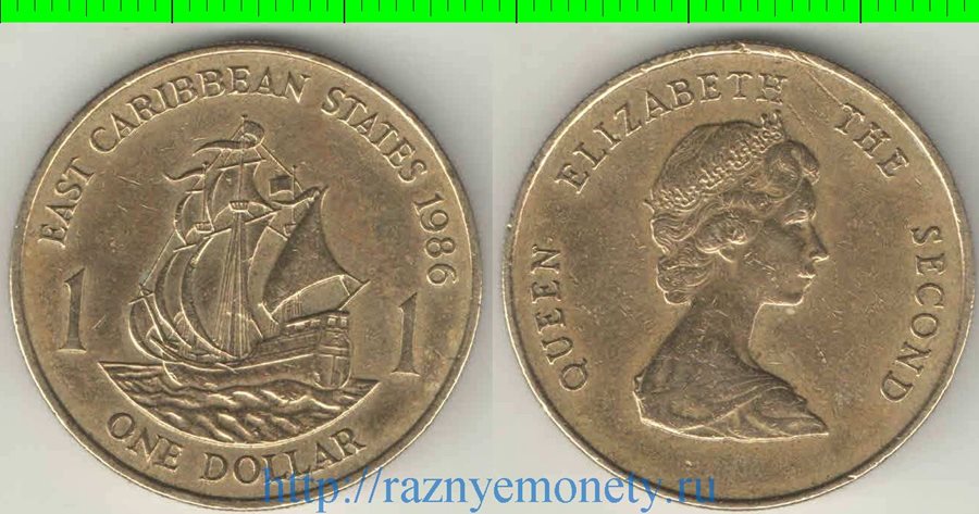 Восточные Карибские Штаты 1 доллар (1981, 1986) (Елизавета II) (корабль, лодка)