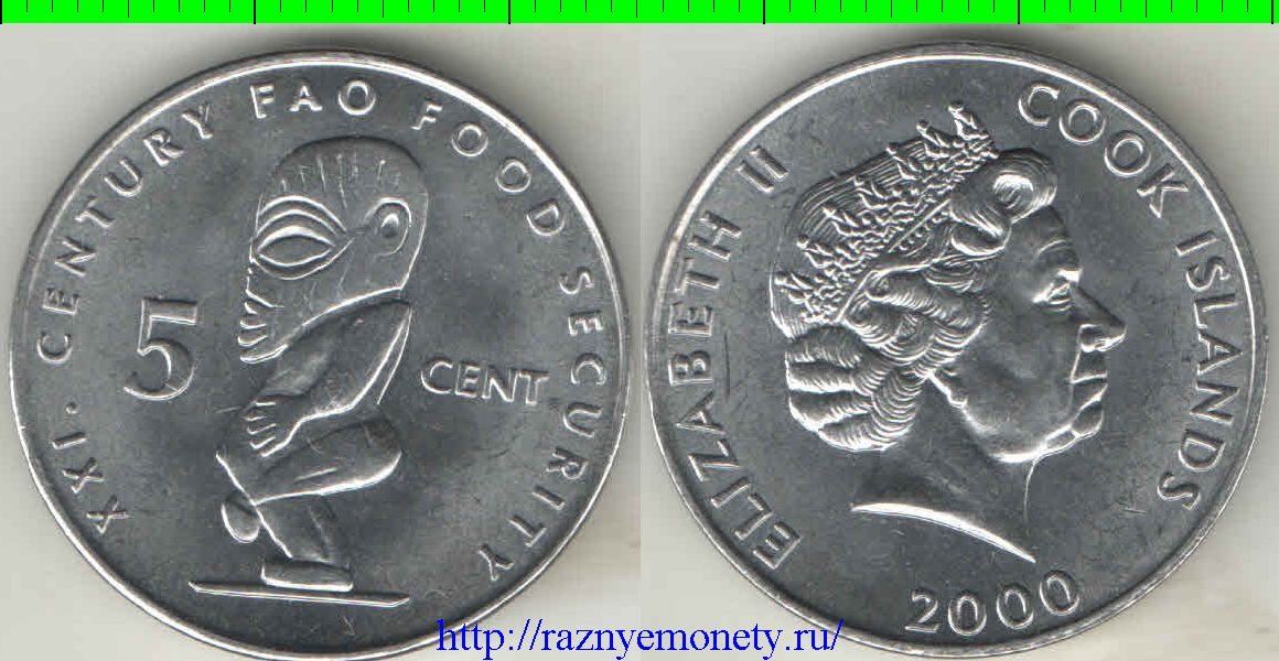 Кука острова 5 центов 2000 год ФАО (Елизавета II)
