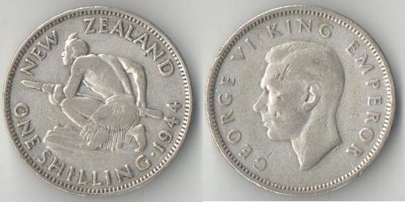Новая Зеландия 1 шиллинг 1944 год (Георг VI) (серебро) (нечастый тип)