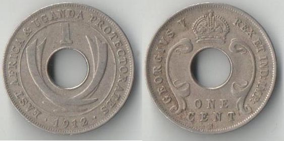 Восточная африка (Уганда) 1 цент 1912 год (Георг V) (неправильная форма, отверстие)