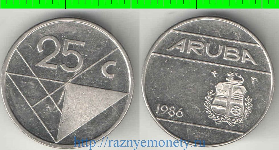 Аруба 25 центов (1986-1988) (Беатрикс, тип I, птичка)