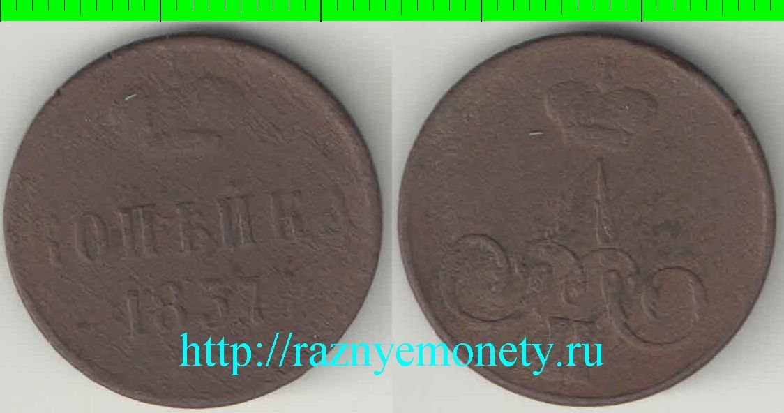 Россия 1 копейка 1857 год ЕМ (Александр II) (тип I, 1855-1859)