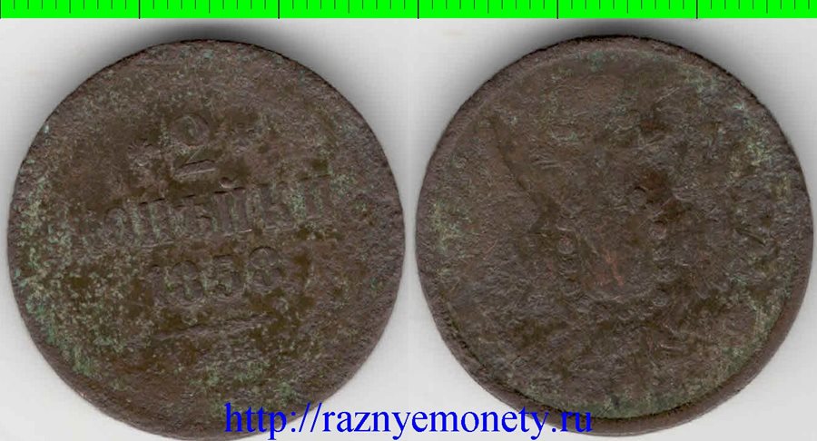 Россия 2 копейки 1858 год ем (Александр II) (тип I, 1856-1860)
