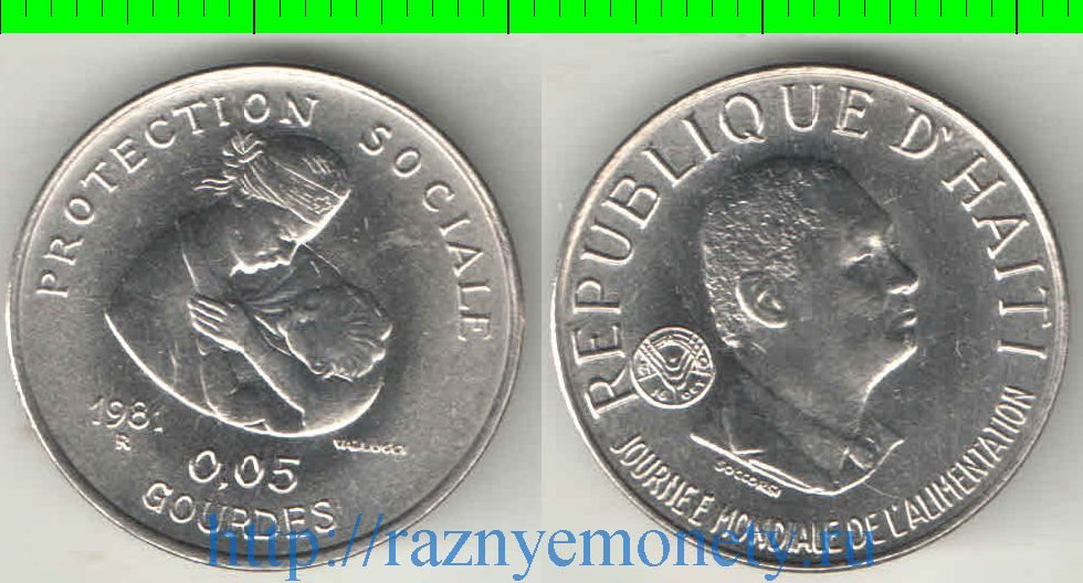 Гаити 0,05 гурда 1981 год ФАО (нечастый номинал)