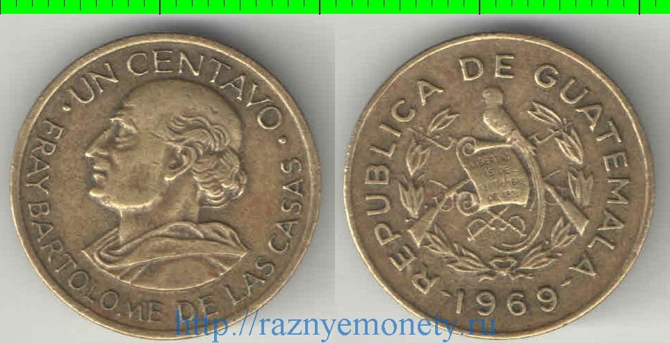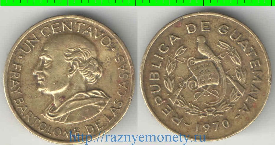 Гватемала 1 сентаво (1965-1970) (тип IV, нечастый тип) (латунь, 19 мм) (птицы)