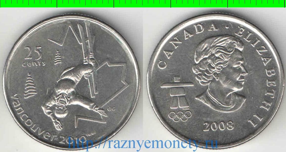 Канада 25 центов 2008 год (Елизавета II) (Ванкувер - фристайл)