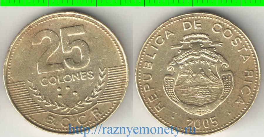 Коста-Рика 25 колонов 2005 год (тип III, год-тип) (латунь)